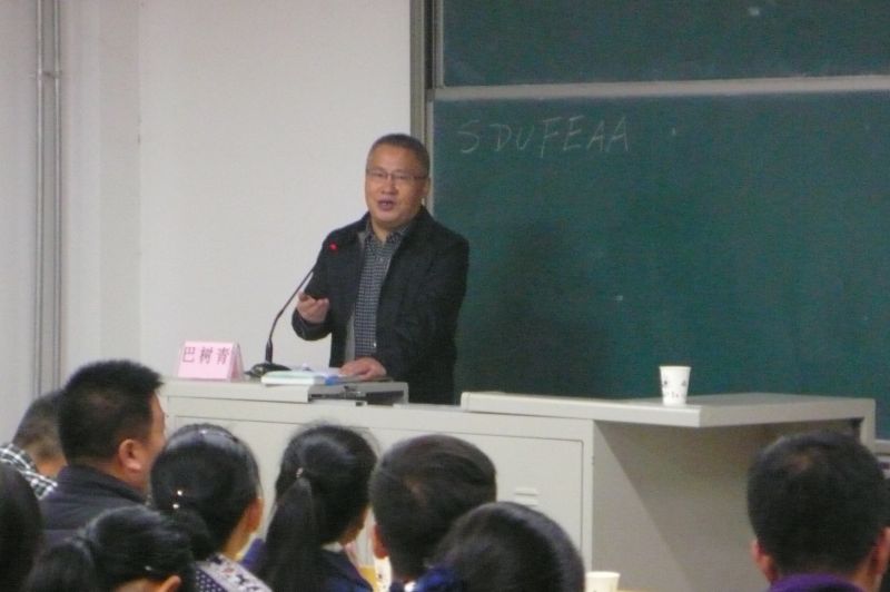 任忠跃介绍了东营近期的经济发展情况,讲述了东营校友会的成立、组成和活动开展的情况,表达了他对学校建设和母校师生的美好祝愿。巴树青首先感谢领导老师给予东营校友会此次来母校交流的机会,随后他结合自己20余年的工作经历向同学们分享了学业与职业生涯的经验和感受。巴树青将“人生中的14年”分为“大学四年”、“毕业后第一个五年”和“毕业后的六到十年”三个阶段。一是大学四年,大学里最重要的是学习,其次要参与有益的社团活动,要养成良好的学习习惯,做好职业资格考试的准备,学会表达与沟通;二是毕业后的第一个五年,这五年里应学好本领、交对朋友,不嫌收入低,不轻言放弃;三是毕业后的六到十年,这五年应做好对自己的整体评价,认真考虑自身以后的发展方向,并详细介绍了应如何正确地走好创业之路。最后,巴树青表达了对同学们的殷切期望,希望同学们能脚踏实地、抓住机遇、走好人生每一步。