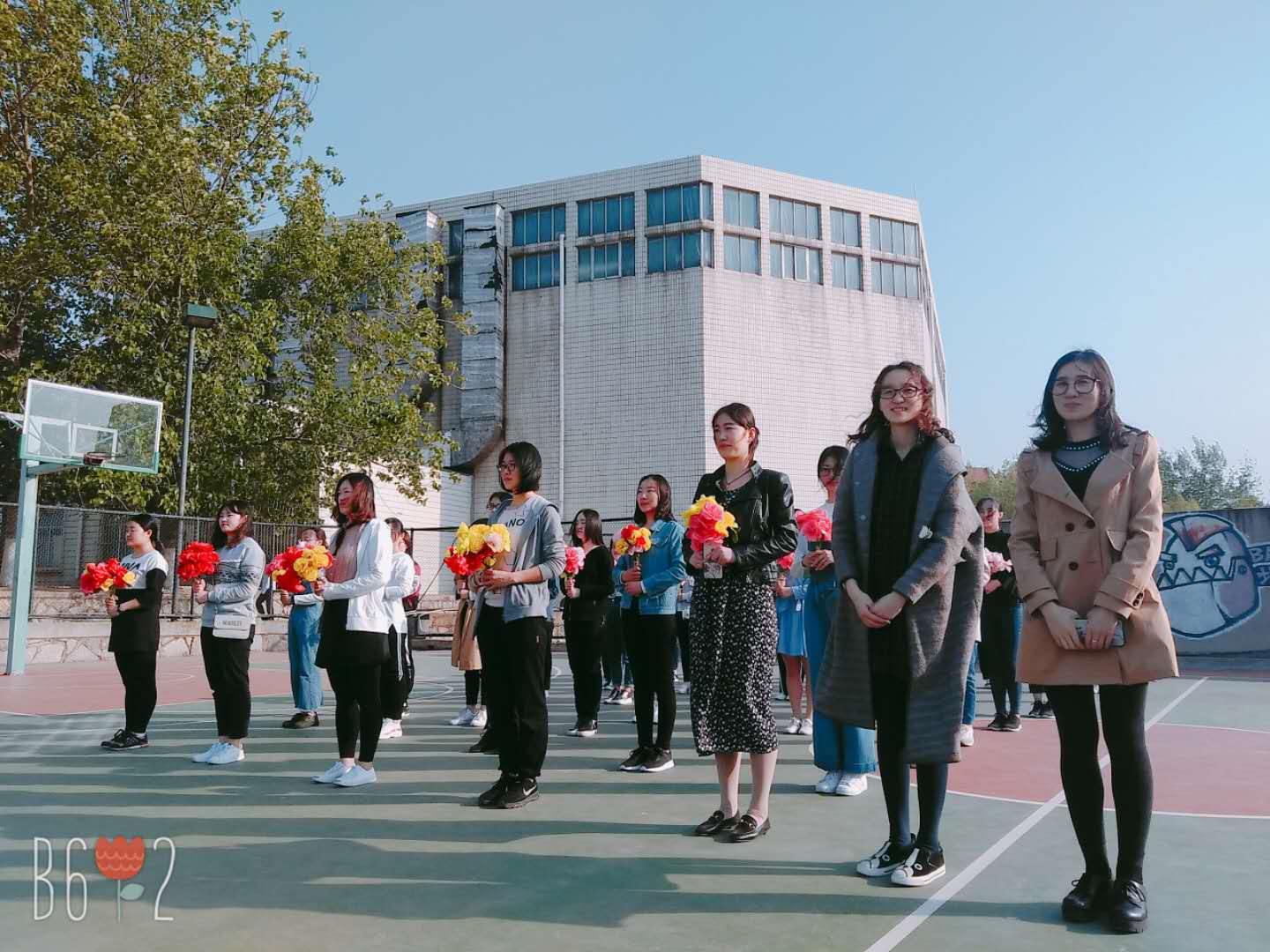 4月17日下午,和煦的阳光下,研究生花束队48名同学神采奕奕,为承担学校2018年春季运动会项目而认真排练着,校团委副书记甘超、校社会实践负责人杨静老师来到操场看望同学们。甘书记对同学们的刻苦训练表示肯定,对存在的问题提出了具体指导意见,鼓励同学们挥洒青春,发扬顽强拼搏的精神,助力学校2018年春季运动会胜利召开。